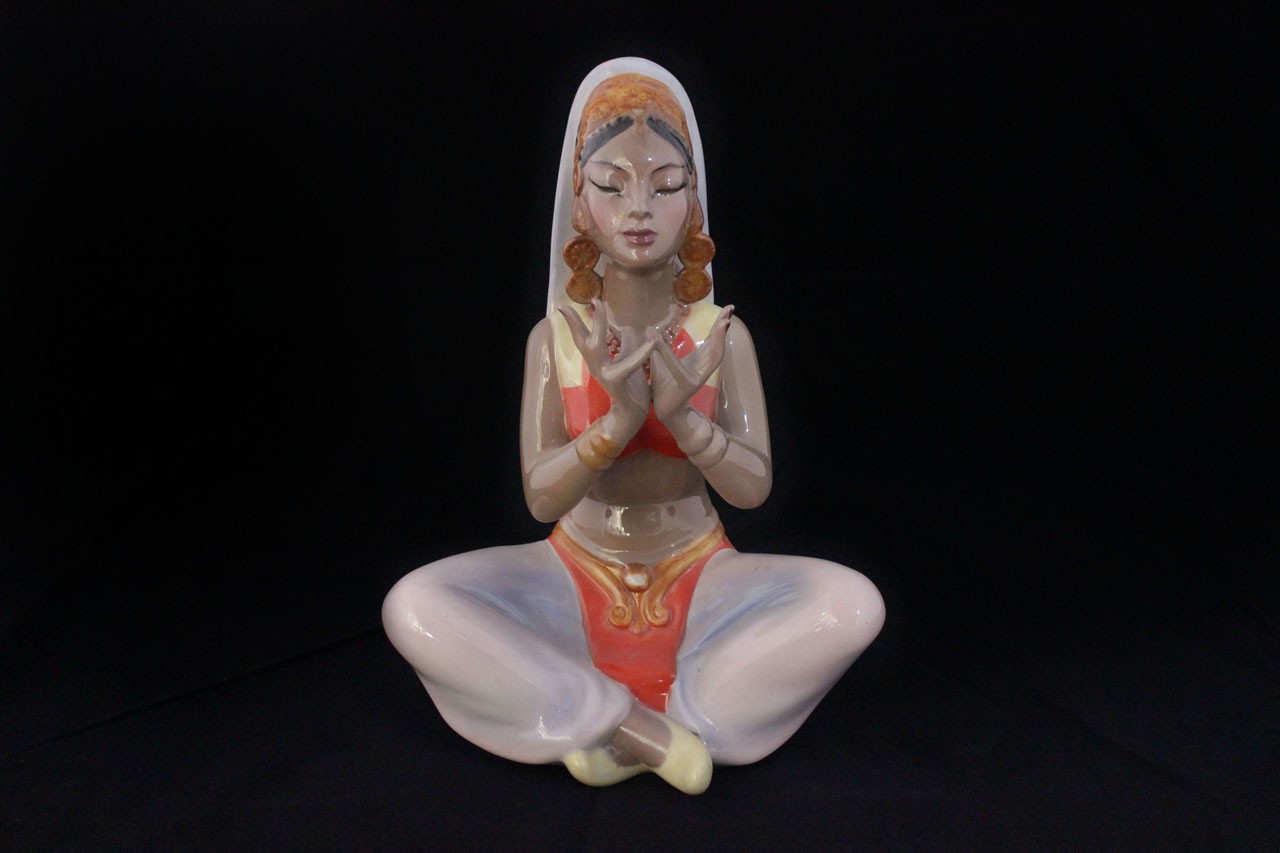 Figura di ragazza orientale in posa meditativa C.I.A. Manna Torino 1940. 34hx24X17.