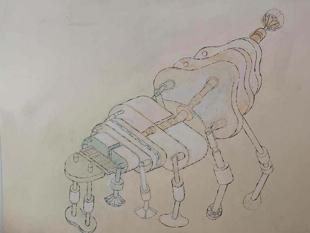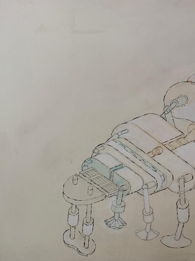 La presente è un progetto di una parte di macchina con possibilità di fissaggio e spostamento in mancanza di atmosfera e suolo impervio, con possibilità di collegamento. tecnica carboncino su cartoncino rigido provenienza studio Volpini disponibile attestato di autenticità.