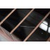 Questa credenza in palissandro tassellata in vetro opalino nero presenta profili in acero, sportello a chiusura a 45 gradi, un interno mosaicato a specchio retroilluminato con una lavorazione racchiusa in due profili ebanizzati tipica di Brusotti.