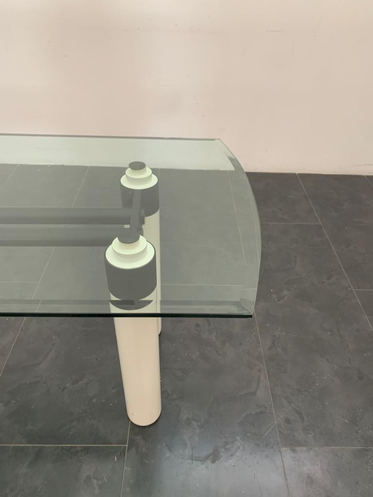 Singolare Tavolo anni 70 con gambali in legno massello laccati avorio contornati da lamina in ferro laccata verniciata nera.